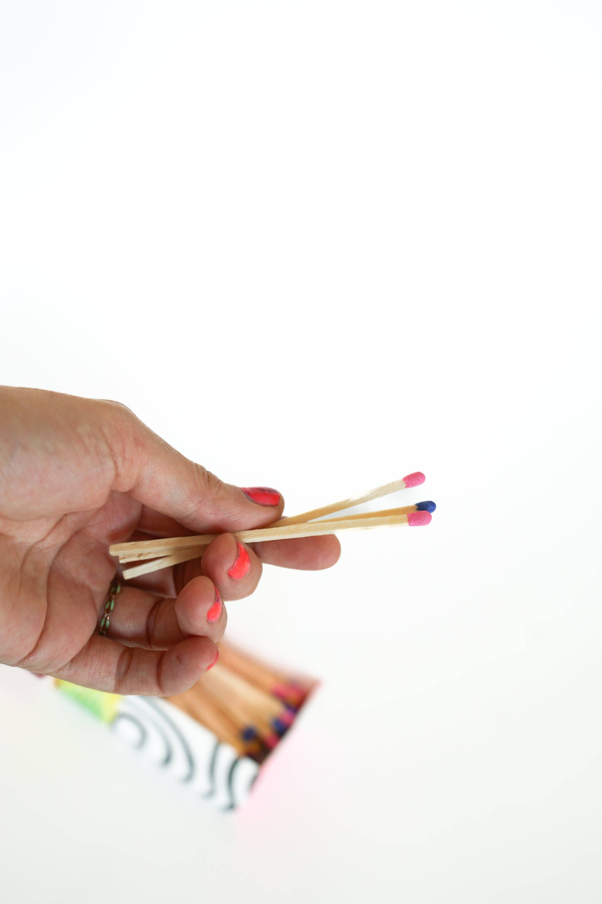 Calling all fans of aesthetics and function! These House Matches are the upgrade your space needs. The sliding drawer holds 100 4" matches (with colorful match heads, of course!), and two strikers on the back side give you ample firing power. Pro tip: when the matches run out, just replace them with other 4" matches! Whether they're on your mantle, the back of your toilet, residing on your bedside, or given as the *perfect* gift – our House Matches are at home wherever you place them.