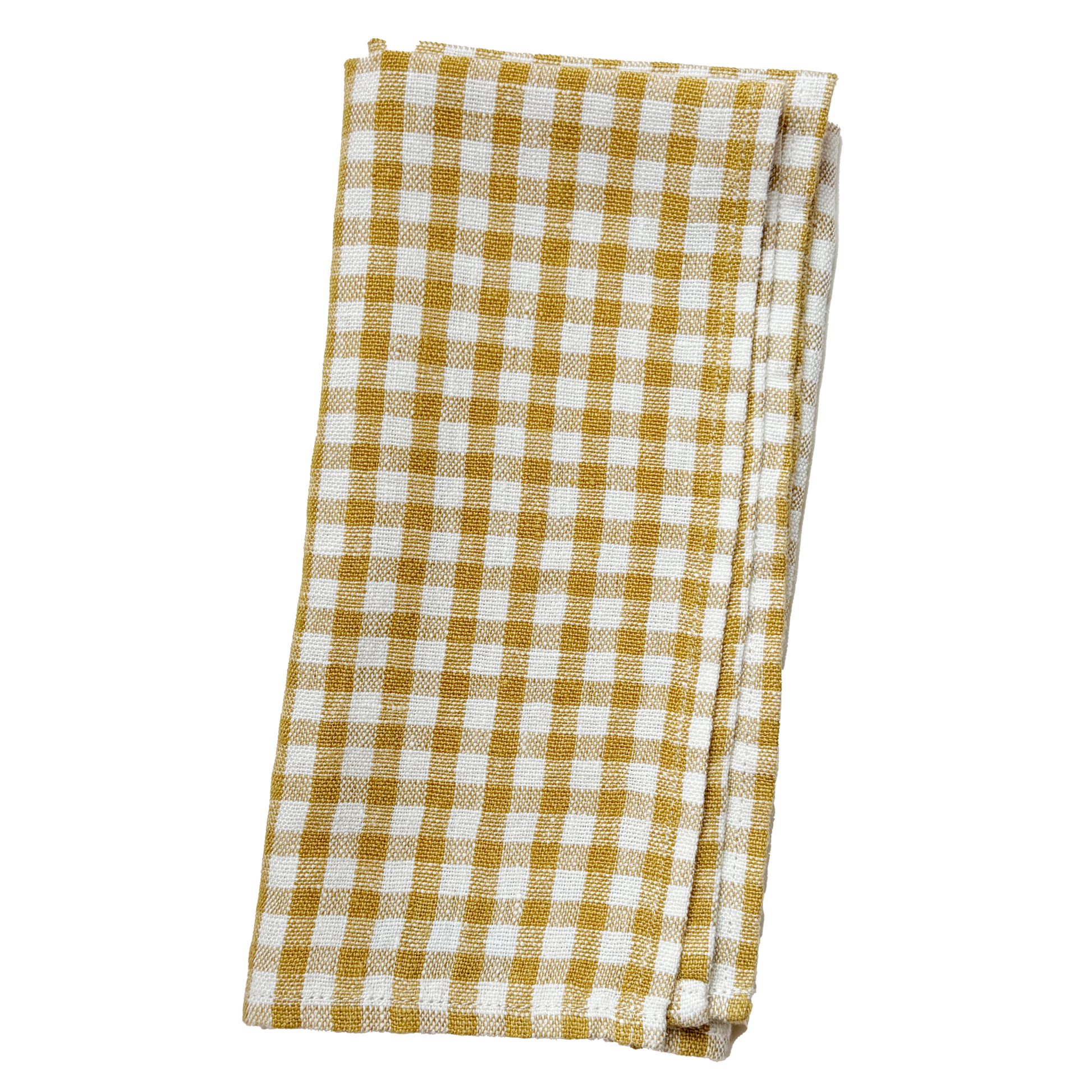 These Mustard Check linen napkins strike an elegant balance between understated sophistication and gentle visual interest. Woven from substantial 240gr m/2 pre-washed linen, they offer a luxurious feel that softens with every wash while maintaining their shape and integrity. The refined geometric pattern adds a touch of character to your table without overwhelming the setting. Built to withstand years of use, these napkins are an investment in both everyday comfort and timeless style.