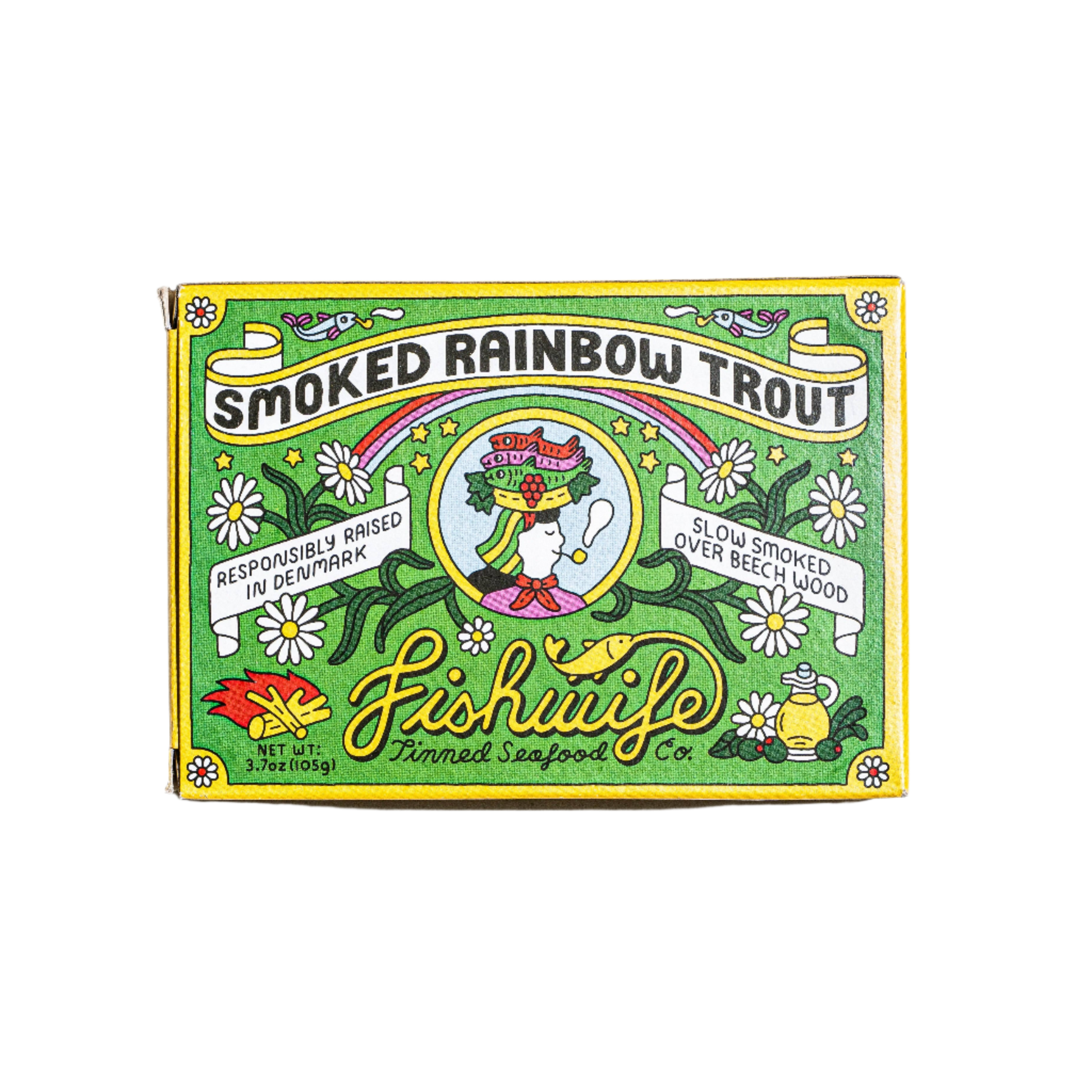 Crafted through two years of meticulous R&D—and with the help of countless devoted taste testers—Fishwife’s Smoked Rainbow Trout is a celebration of texture, flavor, and responsible sourcing. Caramelized on the outside, buttery and flaky on the inside, this trout delivers a savory, smoky bite with just a hint of sweetness.