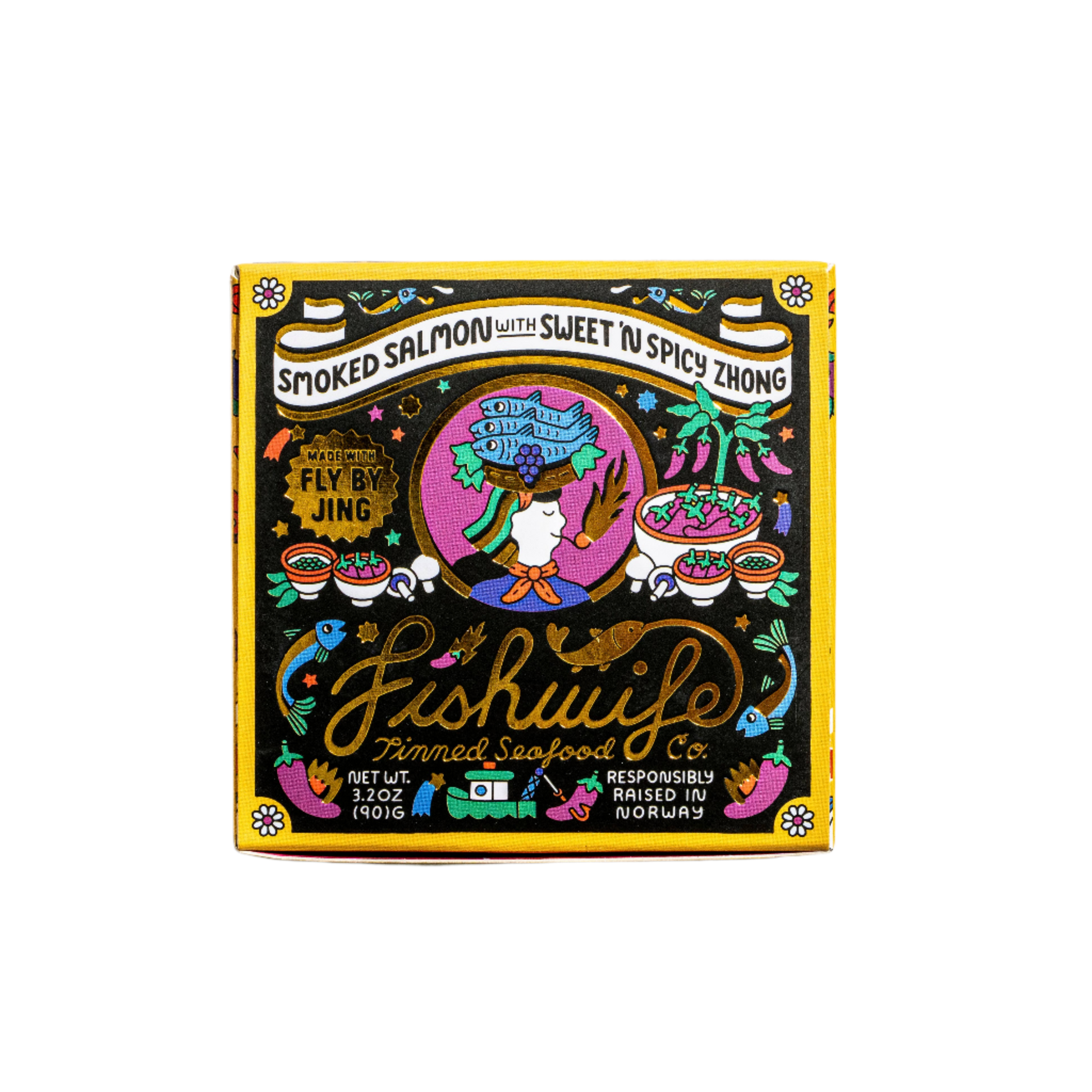 To celebrate three years of delicious collaboration, Fishwife and Fly By Jing proudly present a gold-label, limited-release of Smoked Salmon with Sweet + Spicy Zhong. This long-awaited tin is a fiery flavor bomb—combining Fishwife’s caramelized, tender, beechwood-smoked salmon with Fly By Jing’s cult-favorite Zhong sauce, known for its sweet, tangy, spicy, and umami-rich punch.