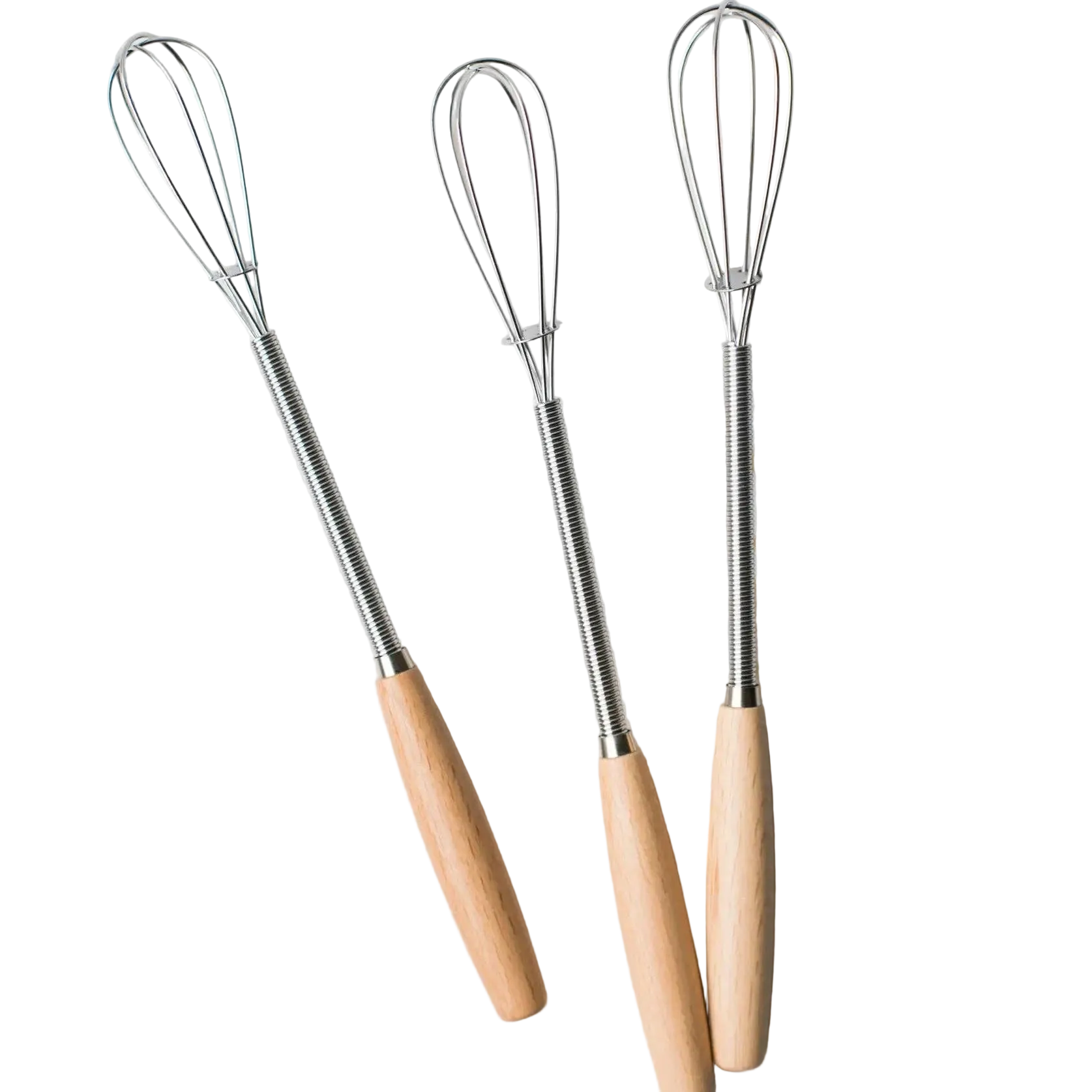 This vintage inspired mini whisk features a charming wooden handle and delicate metal whisking wires, offering both functionality and retro appeal.